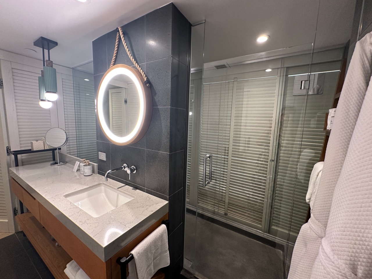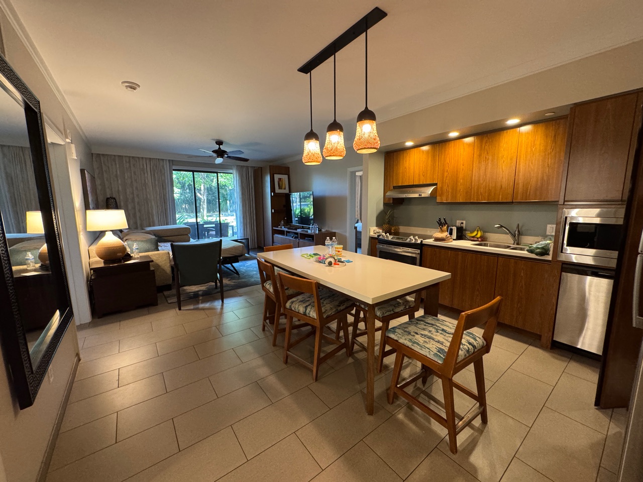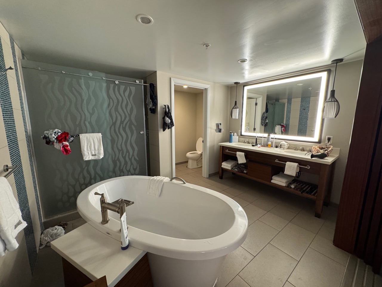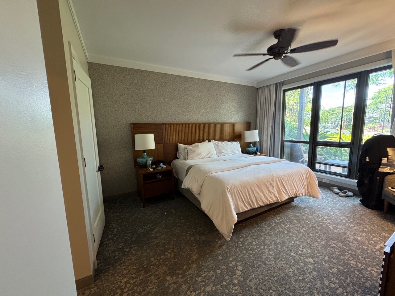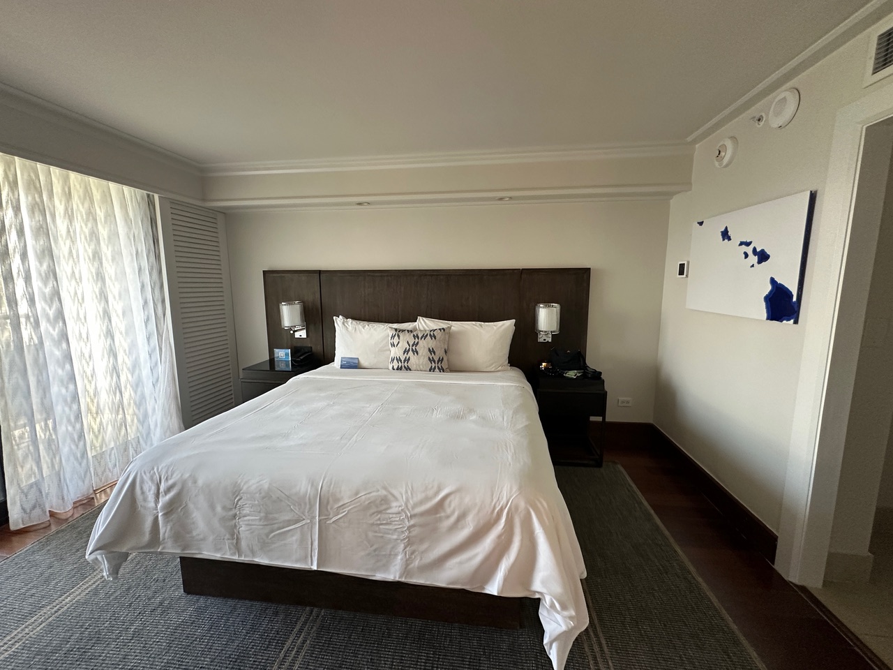 We were lucky and did get upgraded to a suite! There was ample space, including a full bathroom and a half-bathroom. Yes, we had to pay a $57 resort fee and $45 for parking, but it was totally worth it. This is the perfect spot for a chill vibe, peace, and relaxation—ideal for couples, although there is also a family pool. No crazy music by the adults’ pool, just serene Hawaiian melodies!
