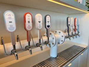 By that point, I had worked up quite an appetite, so it was onto the food and cocktails. The Capital One Lounge has an extensive menu of cocktails and mocktails. I sampled a few different cocktails and they were all great (the Bluebonnet was my favorite). They also have a wide selection of beverages on tap: lemonade, iced tea, oat milk lattes, root beer, and more!