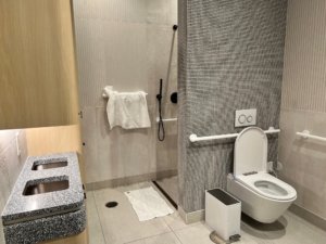 After a quick 30-minute ride, I was off to the shower suite that they had prepared for me while I was cycling. It was huge! It had everything I needed—a shower, body wash, shampoo, conditioner, a hairdryer, etc.