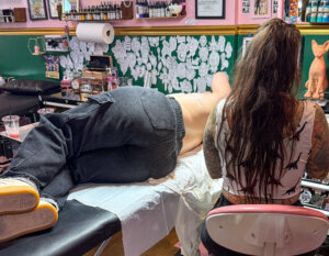 Jes (the owner) made us feel so comfortable. She turned on a Taylor Swift playlist, brought out her Taylor Swift cardboard cutout, and we had the best time! She listened to what we wanted and tweaked everything so it was perfect. I cannot recommend her or Haven tattoo studio enough! I decided that after following The Eras Tour around the world, I should get some lyrics to commemorate that time, so I got “it was rare, i was there” in script near my ribcage (All Too Well is also one of my favorite songs—the 10-minute version, of course). Now I have a permanent reminder of her amazing tour and of our incredible trip to NYC!