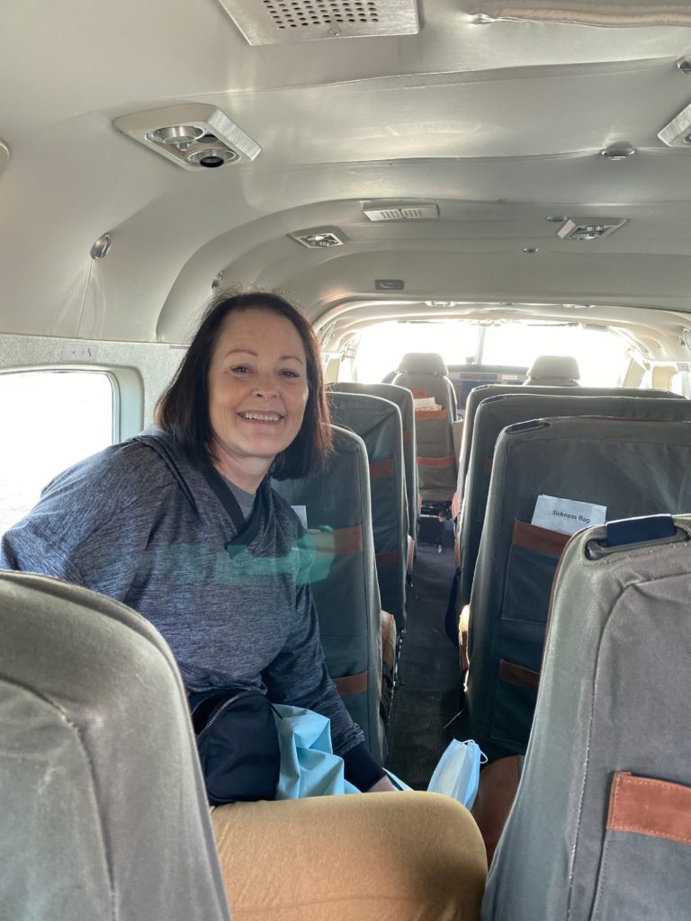 We went to the very tiny Arusha Airport in the morning and boarded the 12-seater airplane. We were the first passengers but we made 2 stops picking up 2 people at each stop. Because the planes are small they told us there was a 33 lb. baggage limit and you had to pack in a duffle bag or backpack. We followed the rules to a tee but saw many people with small roller bags.