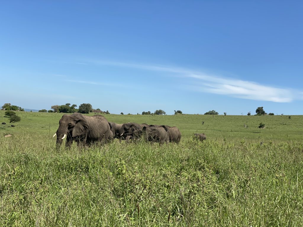 It didn’t take us long to start seeing animals. Before we got to the lodge (which is about an hour away) we had seen herds of elephants, giraffes, lions, topi, and impalas. We were entranced and amazed at how many animals we saw and how close we could get to them. I’m not going to lie, there were times that I was a little scared at being 7-10 feet from lions eating a kill!