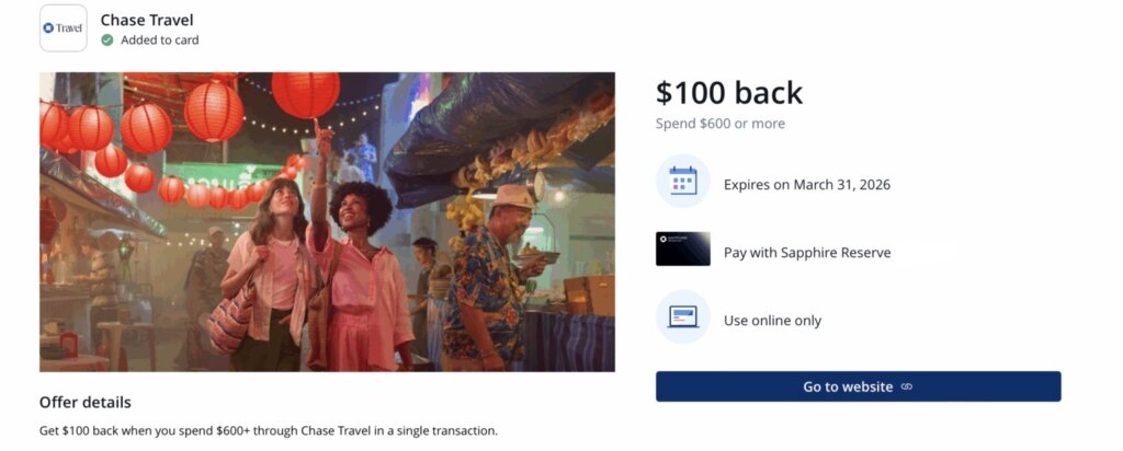 And here is the offer I was excited about. I found it on my Chase Sapphire Reserve®, so I think that I can stack it with my The Edit by Chase Travel℠ credits.