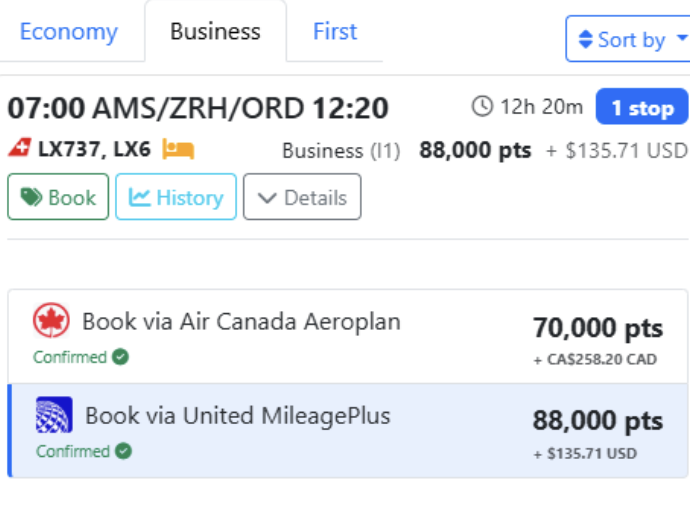 Premium economy is the perfect fit for anyone seeking more legroom and breathing room without committing to the business-class points pricing. Flying Blue has a strong market presence in premium-economy flights to and from Amsterdam. With round-trip pricing at 80,000 points per person, you will be comfortable at a great points price! All four major banks also transfer to Flying Blue, making it easy to accumulate enough points to book these flights.