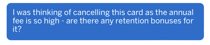 This card has a high annual fee, but I think it is totally worth it for the benefits as I am able to take advantage of those. However, the next time my annual fee is due, I will ask for a retention offer. I have heard of people getting up to 50,000 AMEX points as a retention offer. We value American Express Membership Rewards® at 2 cents a point, so that kind of retention offer would more than pay for the annual_fees annual fee. I haven’t asked for one in the past because I just love my card and have no intention of canceling it. Even so, I might as well try to get a retention offer, right?