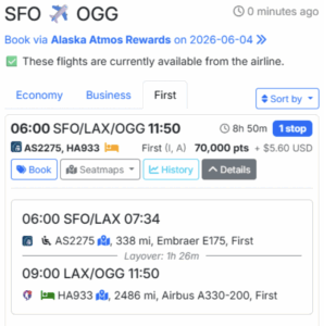 Flight: Seattle (SEA), San Francisco (SFO) → Maui (OGG)