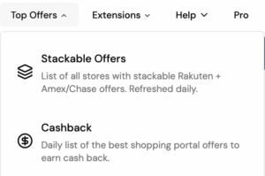 One of my favorite features is looking at all the stackable offers. I can find these by looking at “Top Offers” and scrolling down to the “Stackable Offers” section.