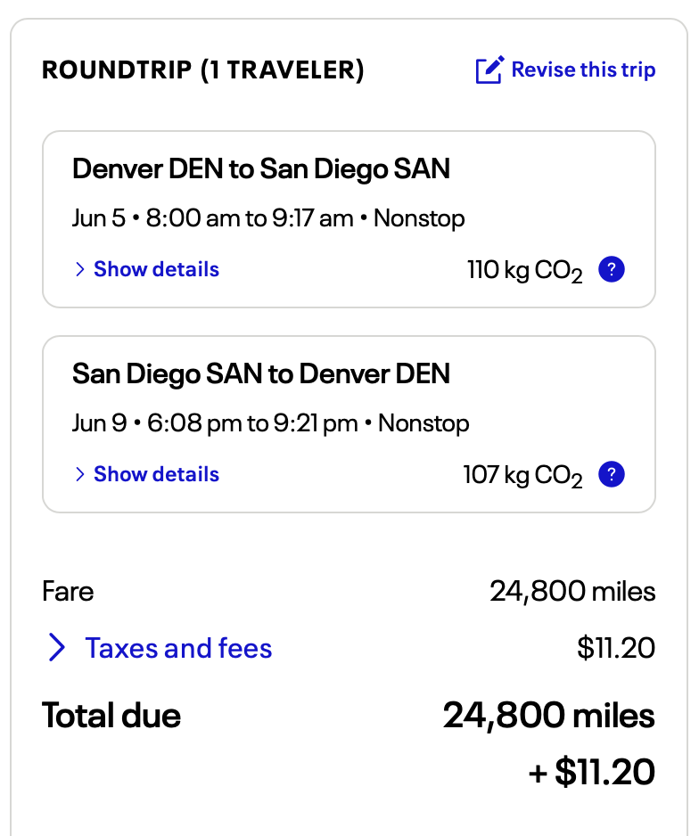 There are so many ways to get to San Diego—let’s head to the beach from Houston today with our family of four. I have United miles (or Chase Ultimate Rewards® that I can transfer to United). Because I have school-age children, we want to go as soon as school lets out. I’ll check out United’s 30-day calendar for point prices in June because I know that flexibility is key to getting a good rate.