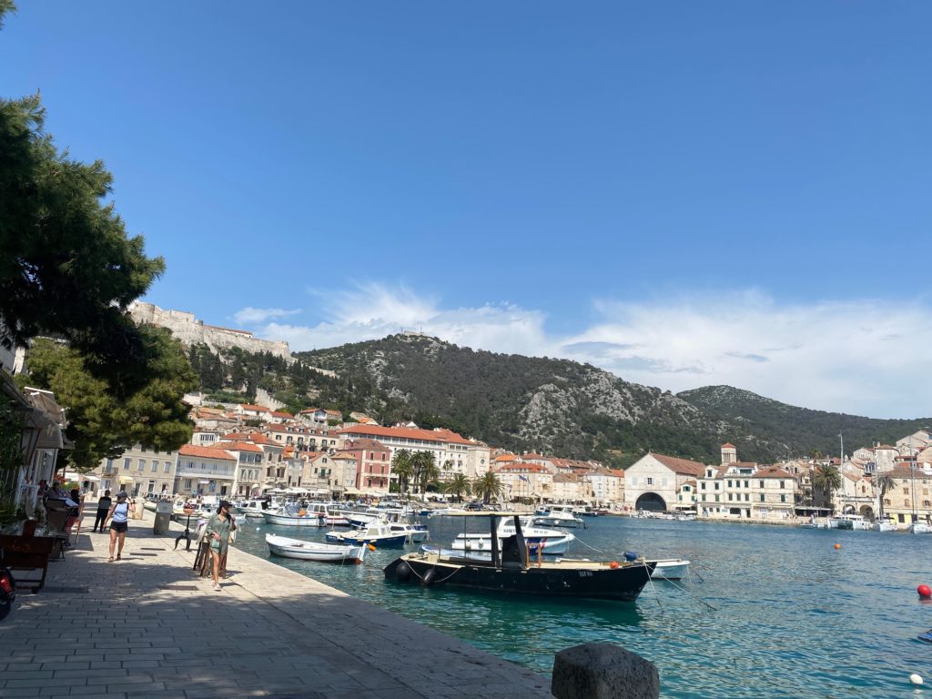We took a ferry to Hvar Island later that day. The ferry was nice and not crowded at all since we were traveling in early May. It was a 3 ½ hour journey for us and cost $49/per person. Can I just say that we all fell in love with Hvar? We made many friends with waitstaff at the restaurants and jokingly said that we “made our mark in Hvar”! This beautiful island was our favorite part of our girl’s trip to Croatia.