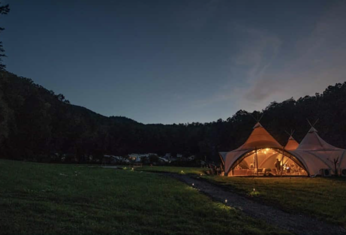 Under Canvas Great Smoky Mountains allows you to experience luxe glamping among hiking trails, wildflower meadows, and more. This property is only about ten miles from Gatlinburg if you’re looking to stay near a town to have dining options.