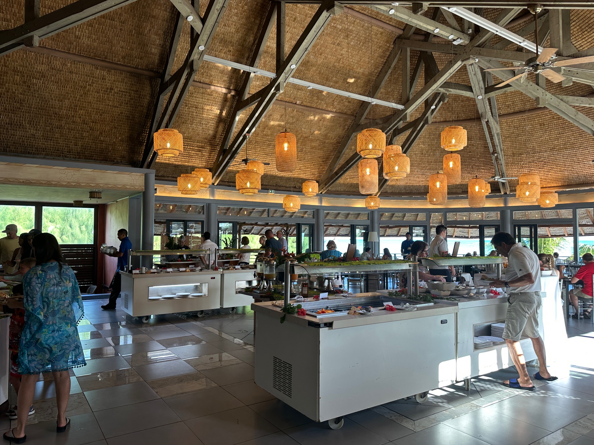 Arii Vahine Restaurant: Main restaurant offering French-Polynesian cuisine with lagoon views, especially popular for breakfast and themed dinners. Because I’m a Hilton Gold member, we had free continental breakfasts. This included all the cold options, which were plentiful. We could have upgraded to include hot options (including made-to-order eggs) for $9.00/day, but neither of us is a huge breakfast eater, so we didn’t do that.
