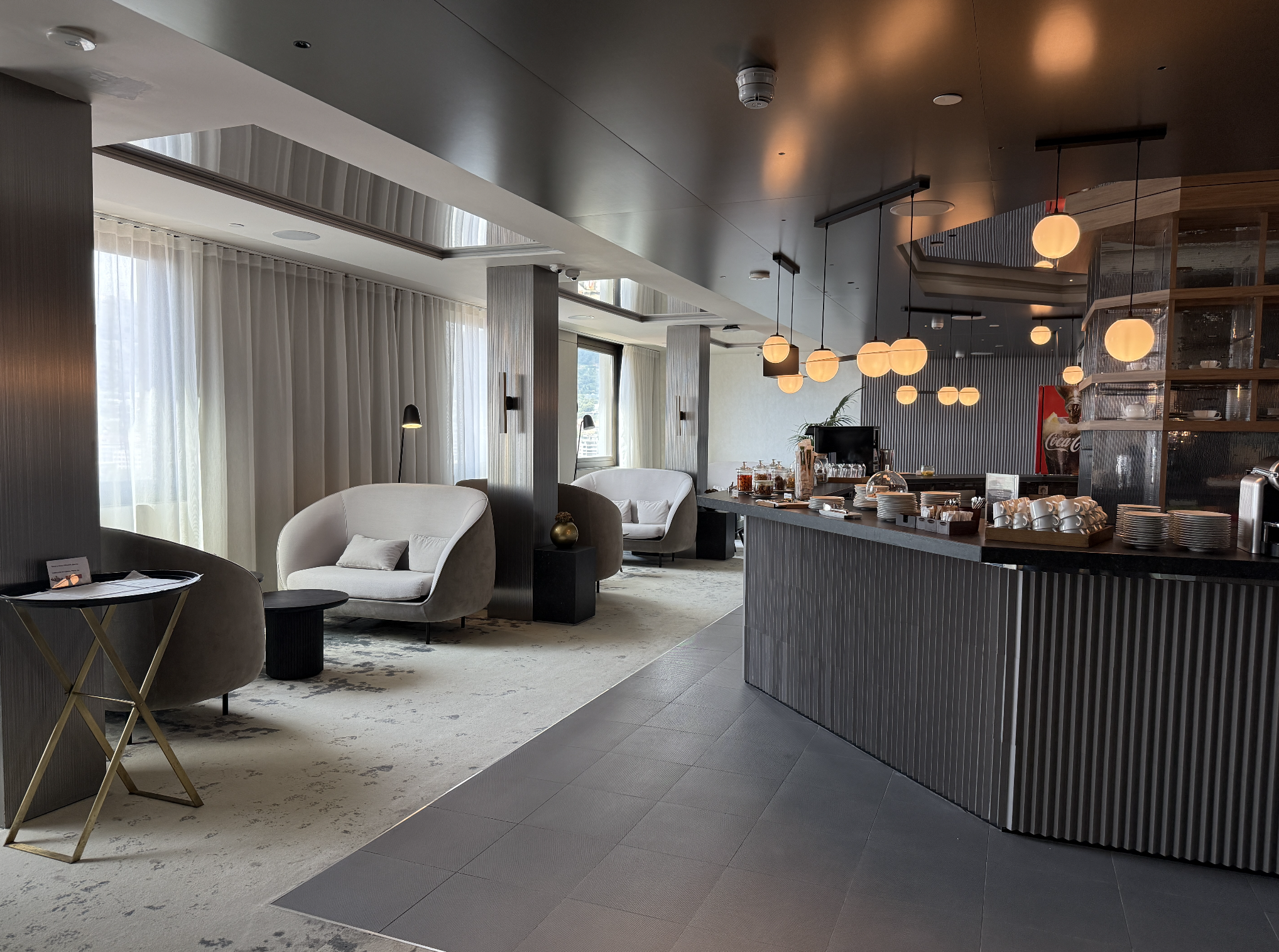 “To our surprise, we were gifted club access this summer by the manager when I sent Pam’s upgrade template. The club is located on the top floor of a high-rise building and rotates 360 degrees while you dine with harbor and city views! My kids thought it was amazing!”