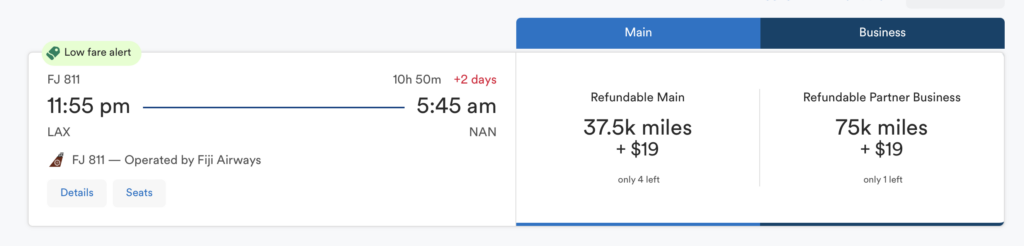Another great Alaska Airlines redemption is a flight from LAX to Fiji. I hope to take this one sometime in the next couple of years.