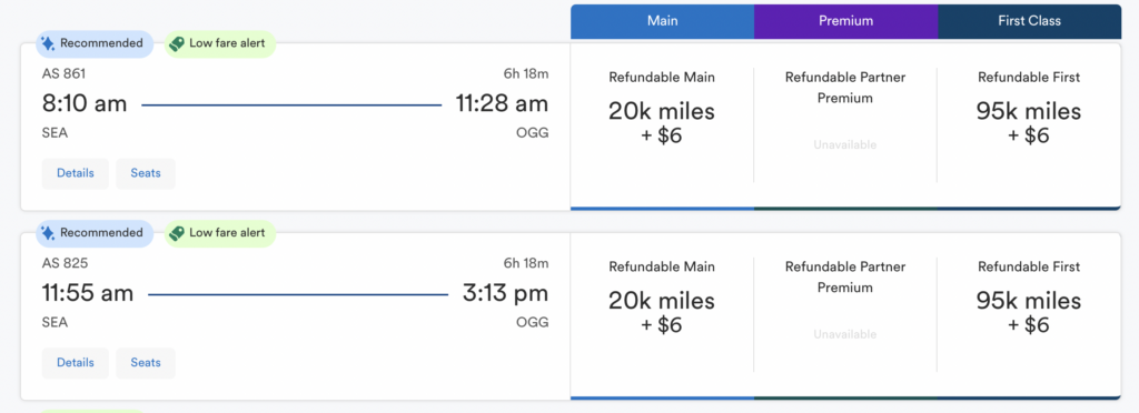 Flights to Hawaii for 20K miles are another great redemption option with Alaska miles. I have often flown Alaska Airlines on this route.