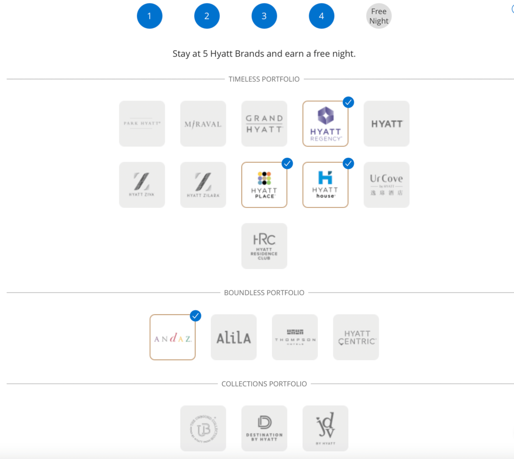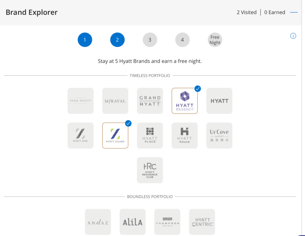 I am always looking for more Hyatt Hotel stays. This method is the easiest one ever if you like Hyatt Hotels. All you need to do is try out some different brands instead of always booking a Hyatt Place or Hyatt Ziva. Check out some other brands. After staying at five different ones, Hyatt will reward you with a free night certificate. The Hyatt Brand Explorer Award is one of the simplest ways to get a free Hyatt night.