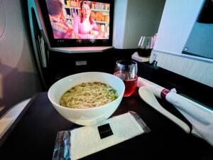 There’s also an à la carte menu you can order from any time during the flight. It includes things like sandwiches, salads, ramen, ice cream, fruit, and more. The best part? You order directly from the remote control for your in-flight entertainment, and the flight attendants deliver it to your seat.