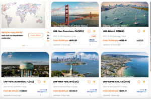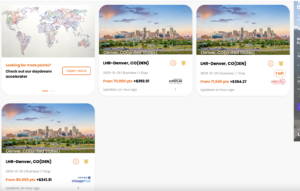 I decided to look at pointsyeah.com and seats.aero to see what I could find. I put in Denver as starting point for 10/22 as I was hoping to leave after an appointment in Denver that afternoon.  My favorite feature on pointsyeah.com is the Daydream Explorer feature. I put Denver – LHR in and a two date search of 10/22-10/23 and filtered for business class only.