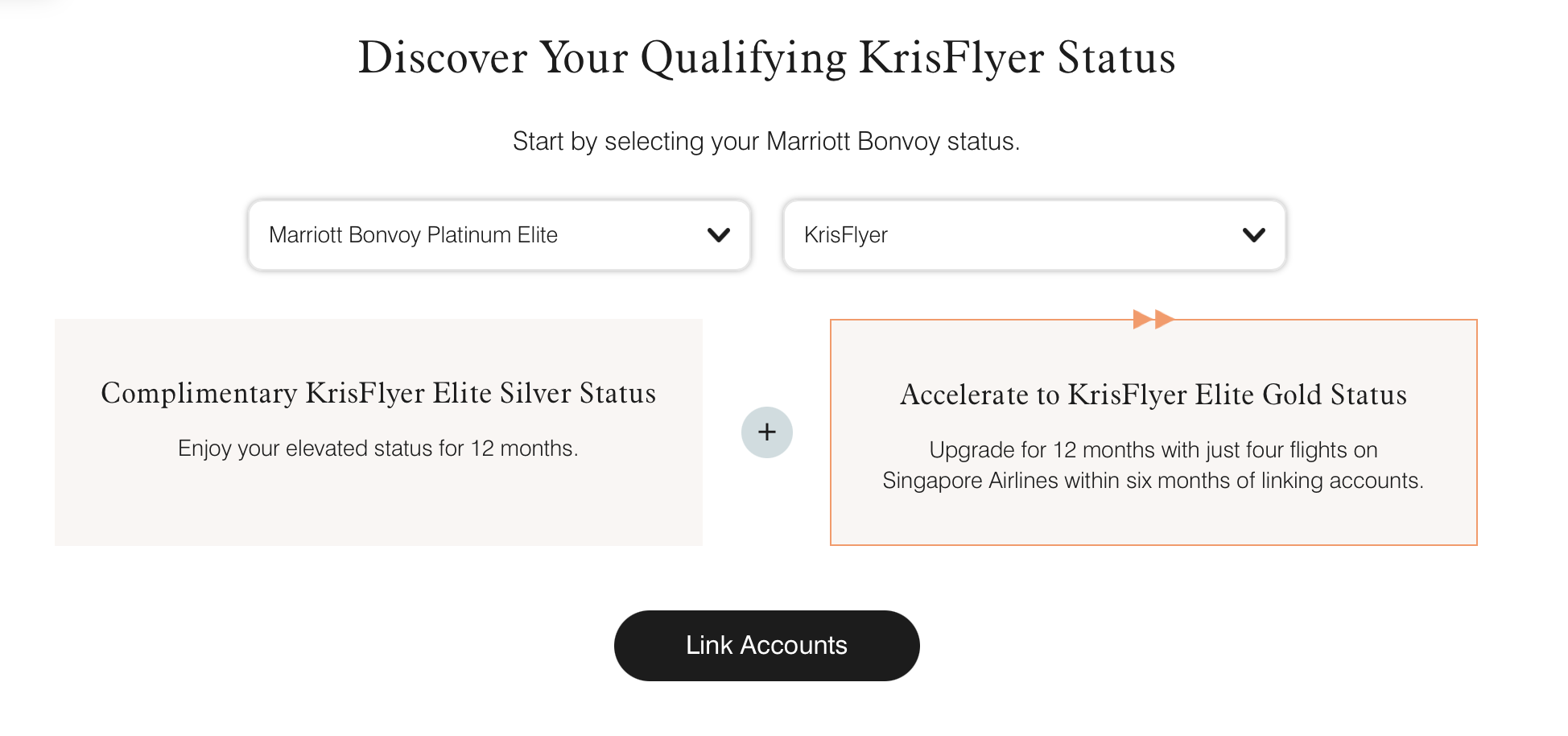 Readers with Marriott Gold or higher elite status can match up to Silver status on Singapore Airlines, and then earn Gold status with just four Singapore flights within six months. If you are planning some trips to Asia, this is especially compelling.