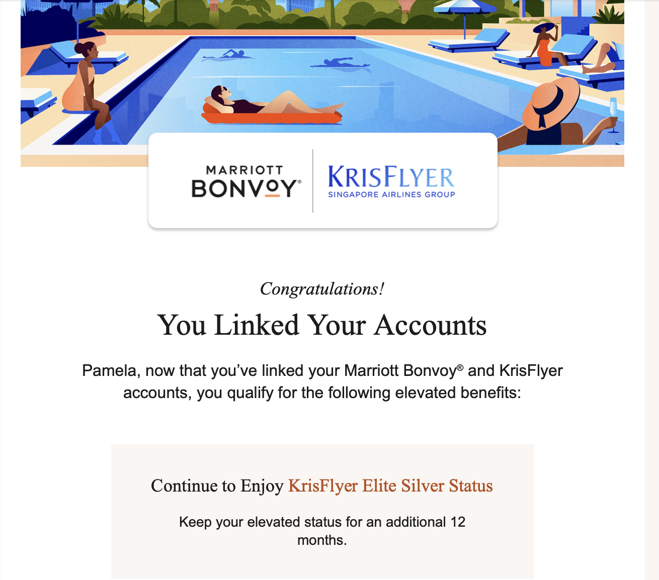 If you have Marriott elite status, be sure to status match to Singapore Airlines. I flew Singapore Airlines a couple of times last year. (It’s one of my favorites!) I need to book a flight with them this year and apply my Silver Elite status.
