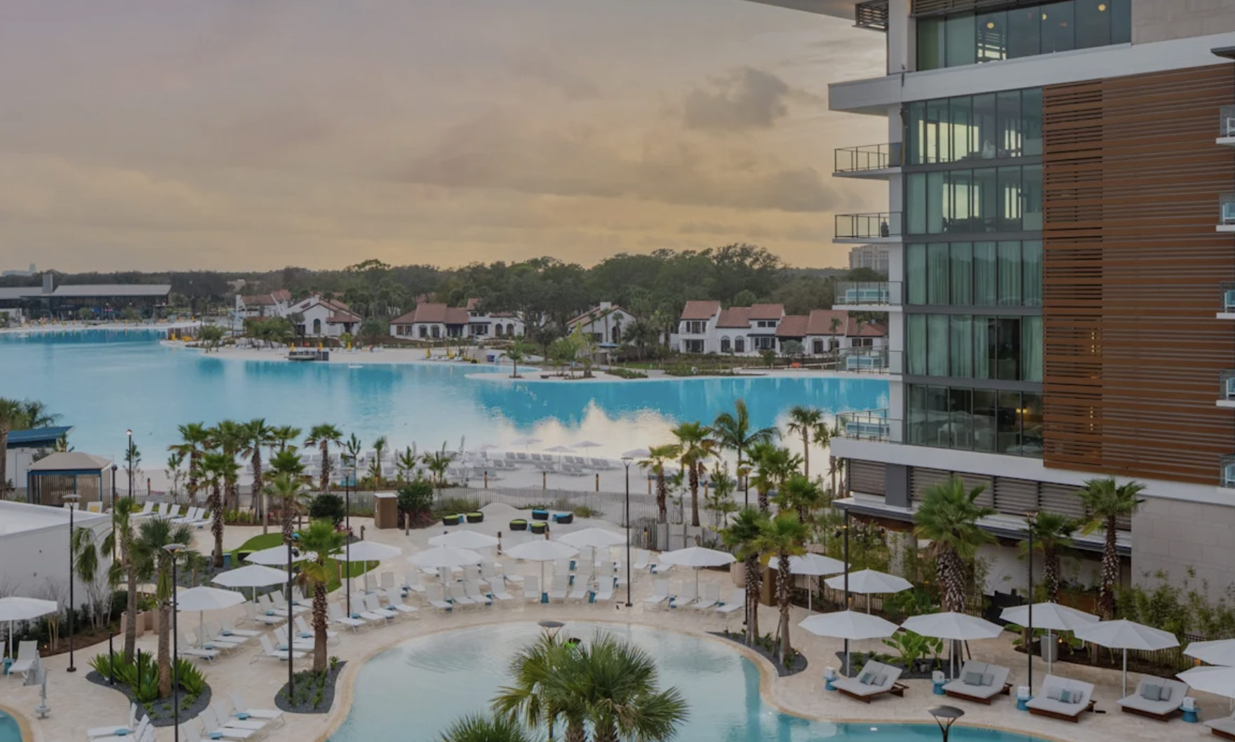 If you’re looking to enjoy the beach and Disney, you can spend your Hilton points at the Conrad Orlando. Located near Evermore Bay, the hotel has its own beach and a beautiful pool.