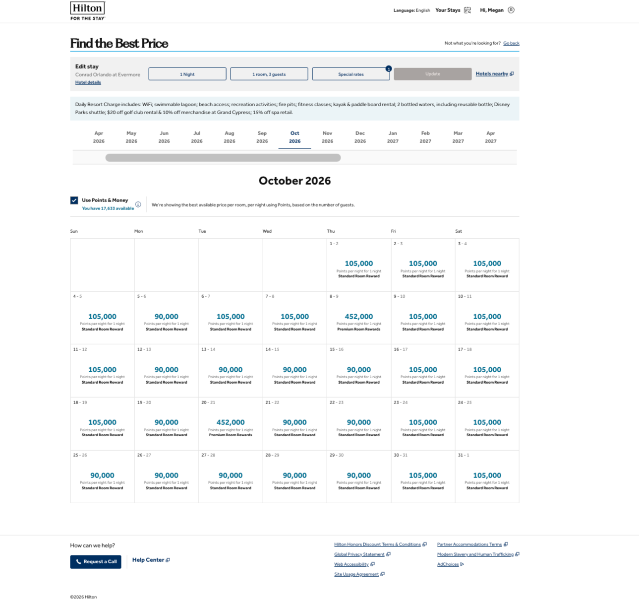If you can book a longer trip, you could also book five nights and get the fifth night free, if you’re booking your reservation fully on points. You must have Hilton status to get the fifth-night-free benefit.