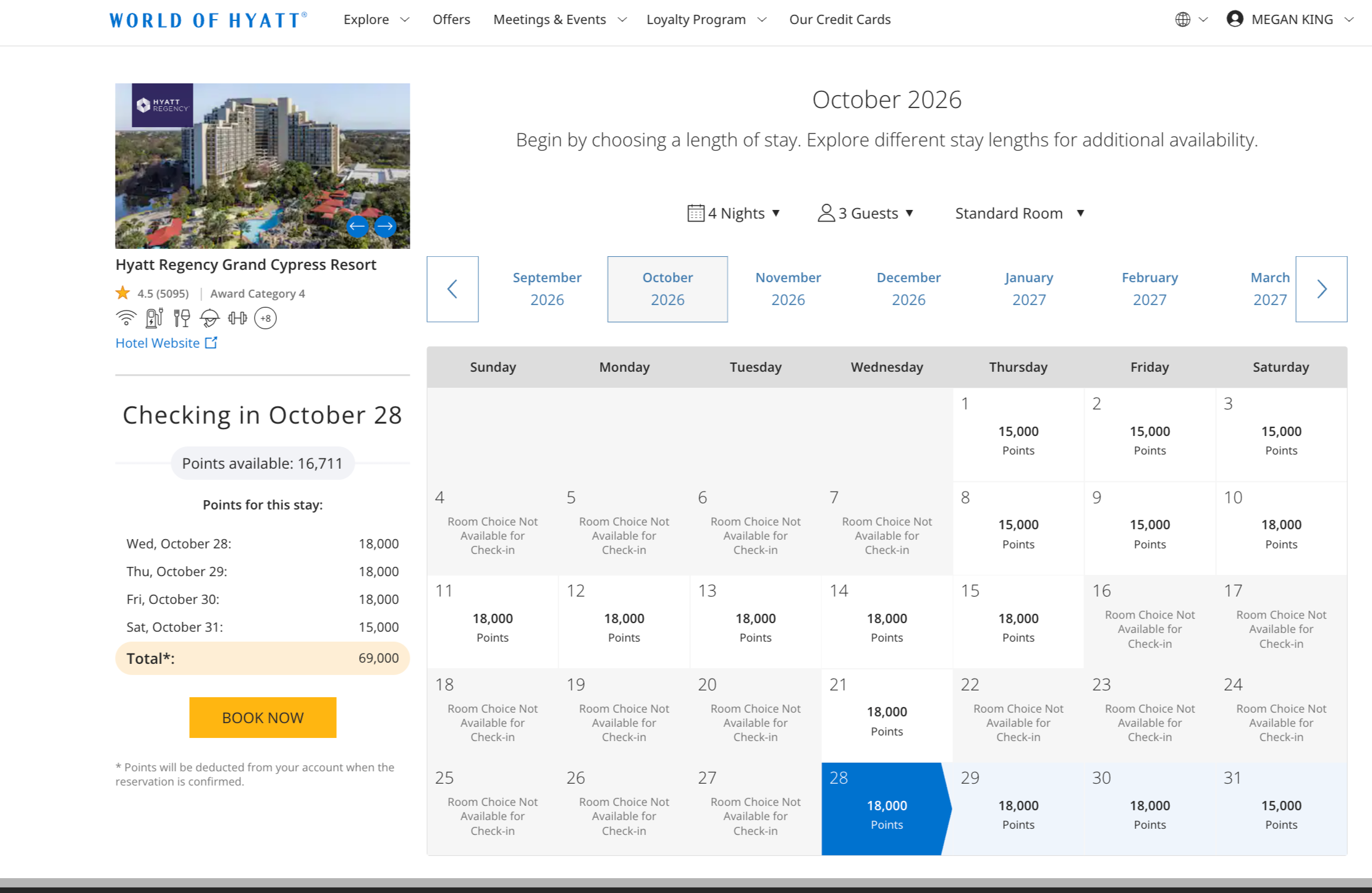 This property is a Category 4, and as of April 2026, it cost between 12,000 points and 18,000 Hyatt points per night. I found availability here for various nights in October 2026 between 15,000 and 18,000 points per night. Cash prices were more than $300 per night at the time.