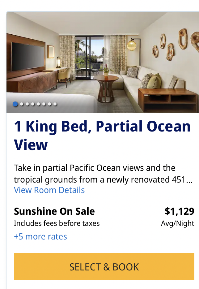 Jess’s family stayed at the Grand Hyatt Kauai, another Hyatt property that is popular with all three of us (and a lot of our readers!). She used 210,000 points for each of her two rooms. Again, the club-lounge access saved them a ton on their food. It is also a Category 7.