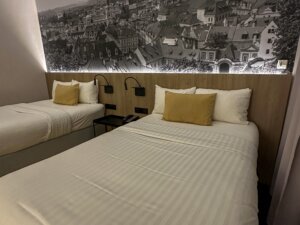 I redeemed 24,000 Marriott points for our one-night stay in a two-twin room. The hotel is just a short walk to the airport, which made our early morning wake-up a little less painful.
