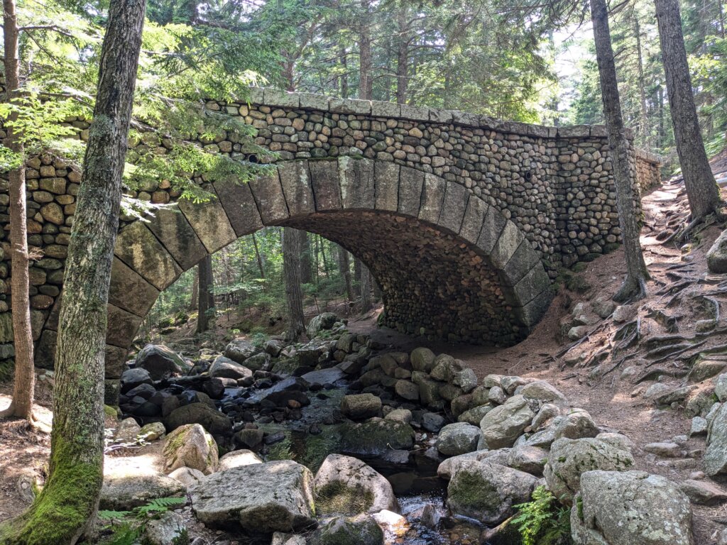 Cobblestone bridge in Acadia National Park built in 1917.