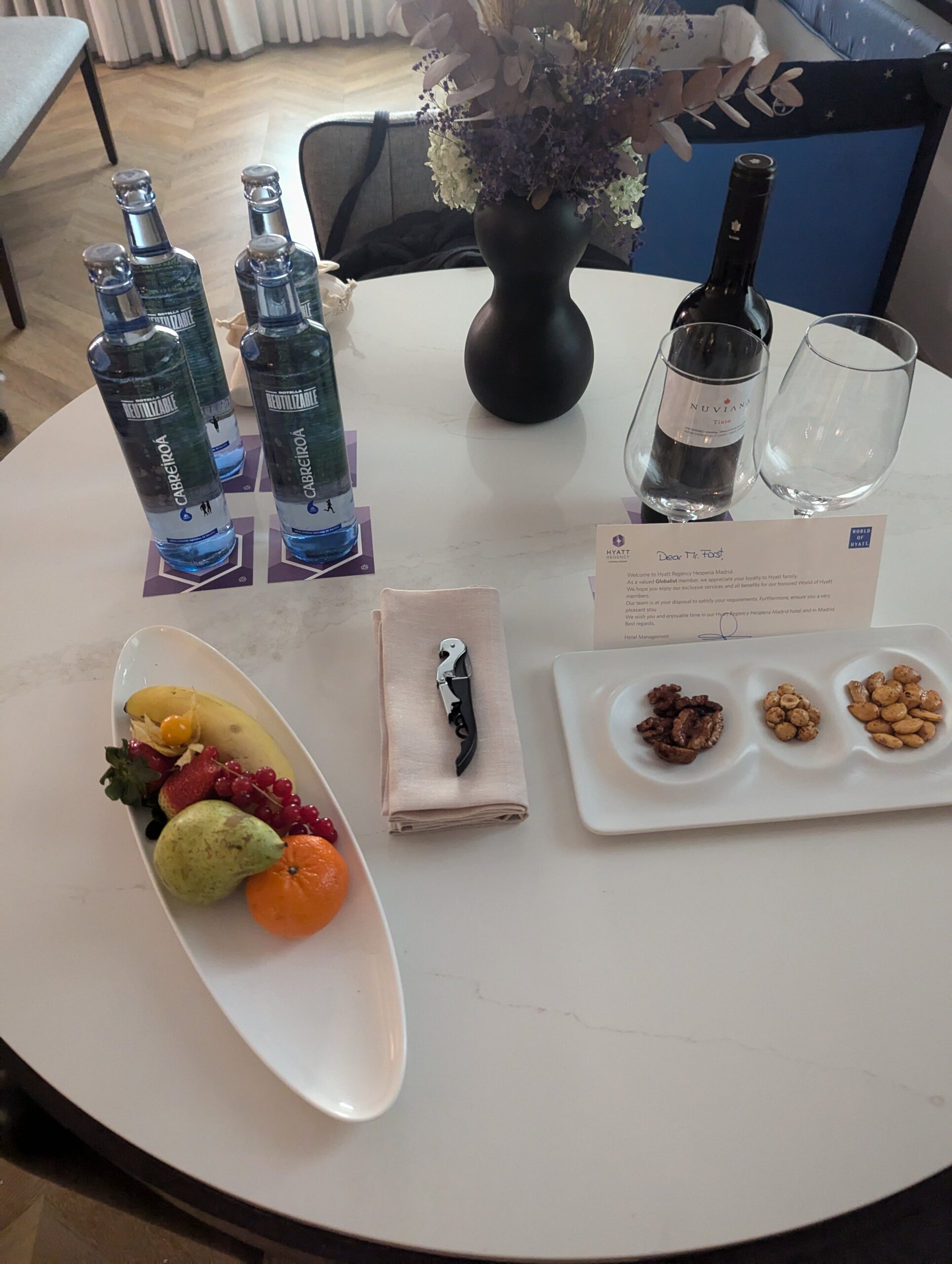 Hyatt Regency Hesperia Madrid and used 69,000 Hyatt points and a Suite Upgrade Award for five nights. Again, Pam’s email template came through and helped secure a premium suite.