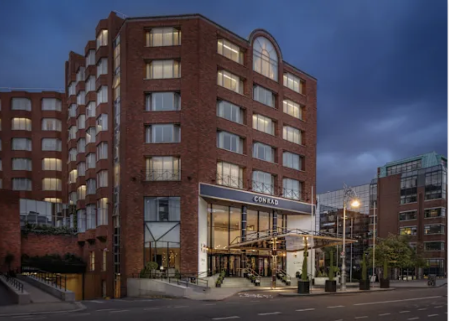 Our trip began with three nights at the Conrad Dublin. The Conrad is one of the more expensive hotels in Dublin, but I was looking for a bougie hotel with a family-room option. I struggled to find a guaranteed connected room or suite to hold all four of us during peak travel season. The Conrad offers a family setup with a king room attached to a twin room, which was available for our trip.
