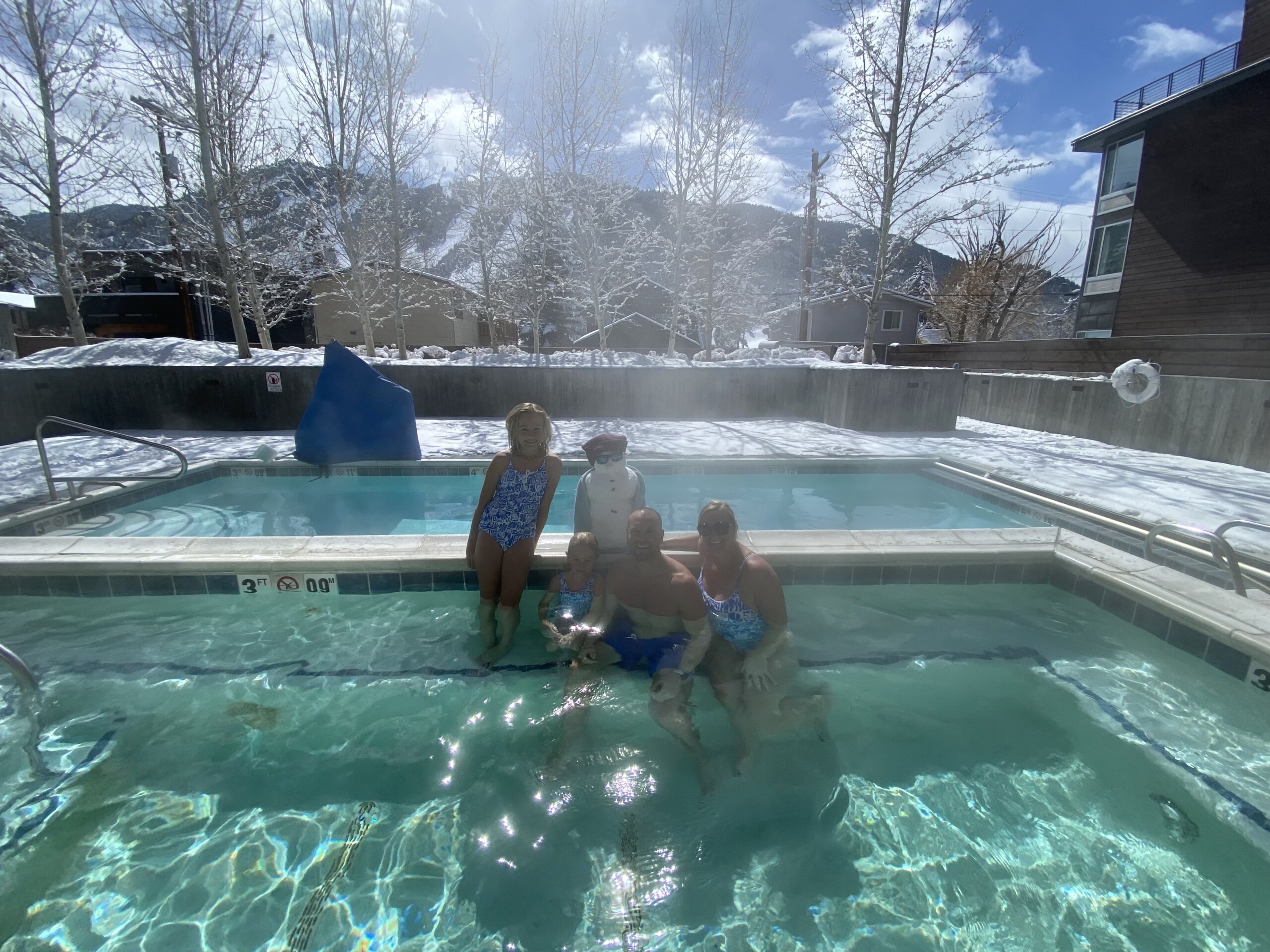 Our room had two queen-sized beds and a trundle bed. The hotel also offered a heated outdoor pool and hot tub, both of which we spent a lot of time in! Perfect spot to hang out in after a day of skiing! The location was also great! We could easily walk to town for meals or to the slopes for snow fun. They also had a FREE shuttle to and from Jackson Hole Mountain Resort. We also got a complimentary breakfast buffet that the kids loved (but not the adults).