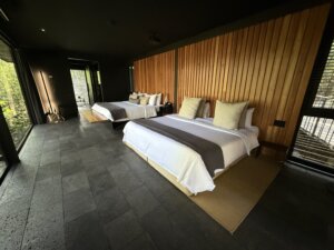 Because Rio Perdido is an SLH property, it’s bookable with Hilton points or Hilton free-night awards. Standard award nights cost 90,000 Hilton points/night. All guest accommodations at Rio Perdido are standalone bungalows. The East Bungalows are the standard rooms, and they sleep three. We inquired about upgrading to the Center Bungalows, which sleep four, and were quoted $140 + 13% tax/night. We declined the cash upgrade, but we were ultimately upgraded to Center Bungalows for free at check-in anyway thanks to my Hilton Diamond status (that I have from holding the card_name).