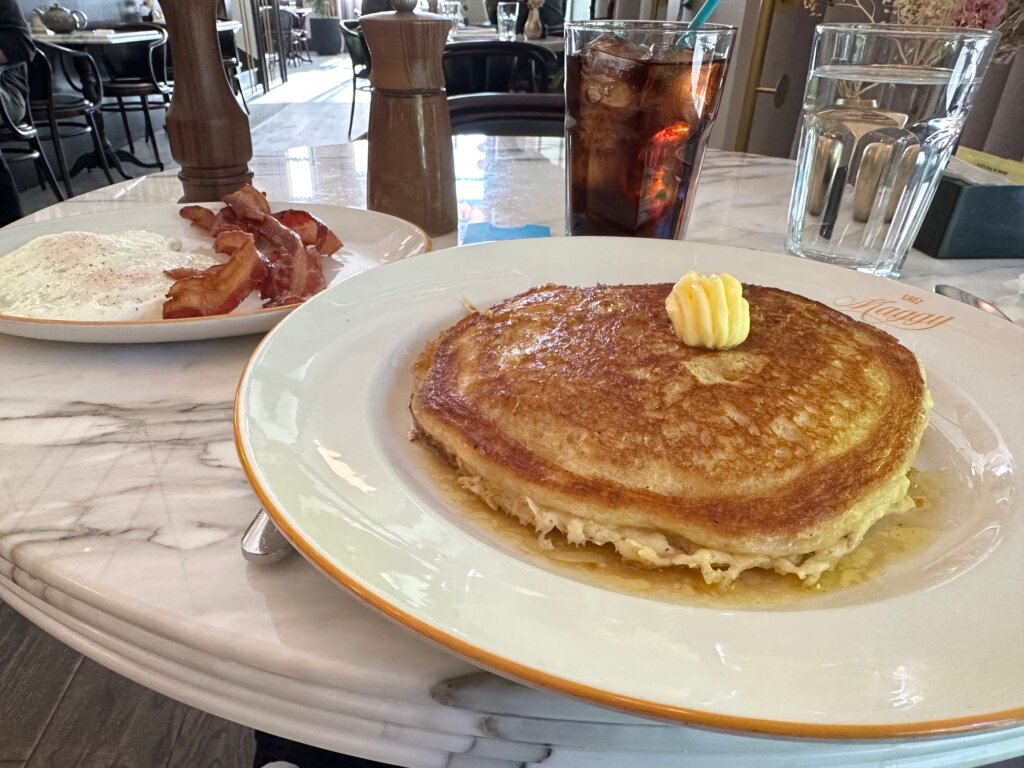 My complimentary breakfast was delicious and included the tip. The orange pancakes are amazing!