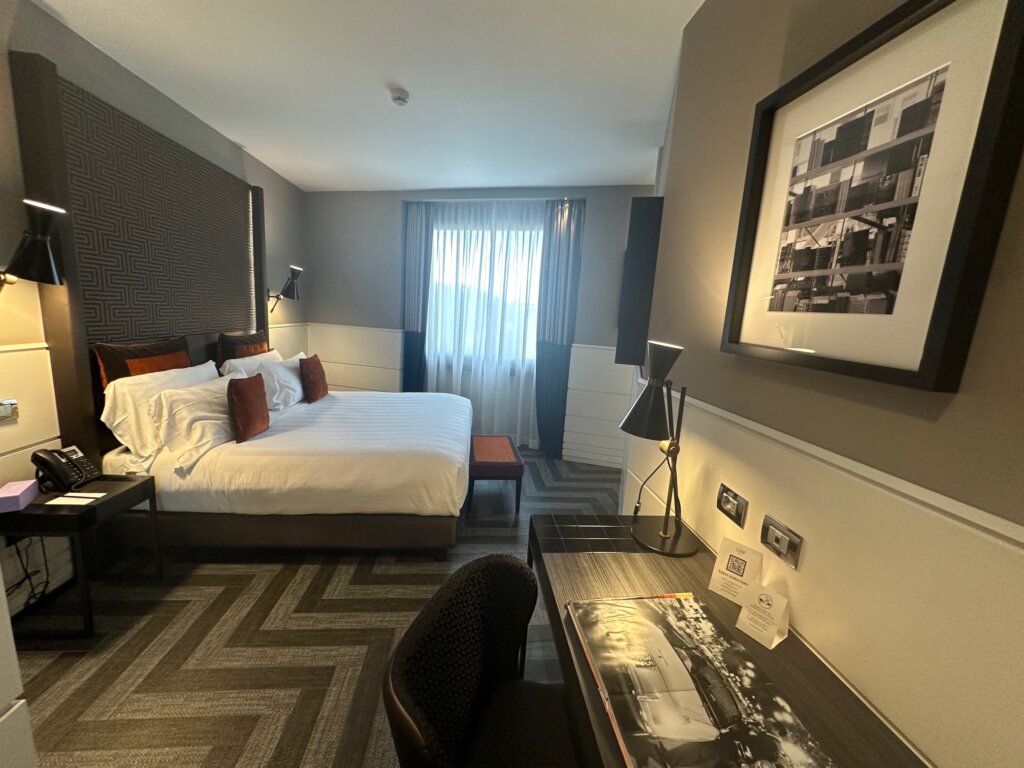It had a cute, funky vibe, but it was a far cry from the Park Hyatt in Chicago, where we stayed before the trip started. Park Hyatts will ruin you for other stays. 😜 The staff was exceptional at The Tribune, and we were upgraded at check-in to a King Premier room with a small (emphasize small) terrace. The room looked newly renovated and was cute but tiny (of course, we were in Europe). There was a complimentary minibar and some treats in the room.