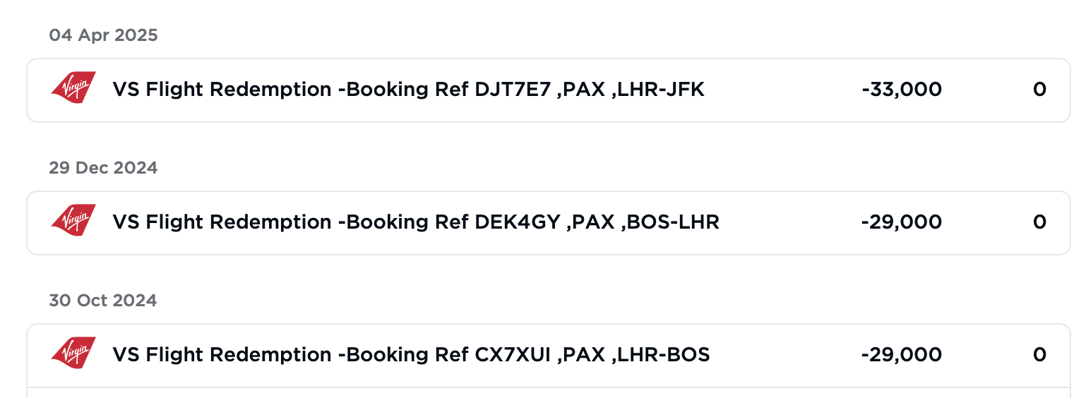 One of the best deals to get to London is via Virgin Atlantic (airline code VS). I regularly fly from BOS to LHR for under 40,000 VS miles. And yes, that is in business class seats! There are also frequent transfer bonuses to VS, so you can sometimes score an even cheaper redemption. Insane!