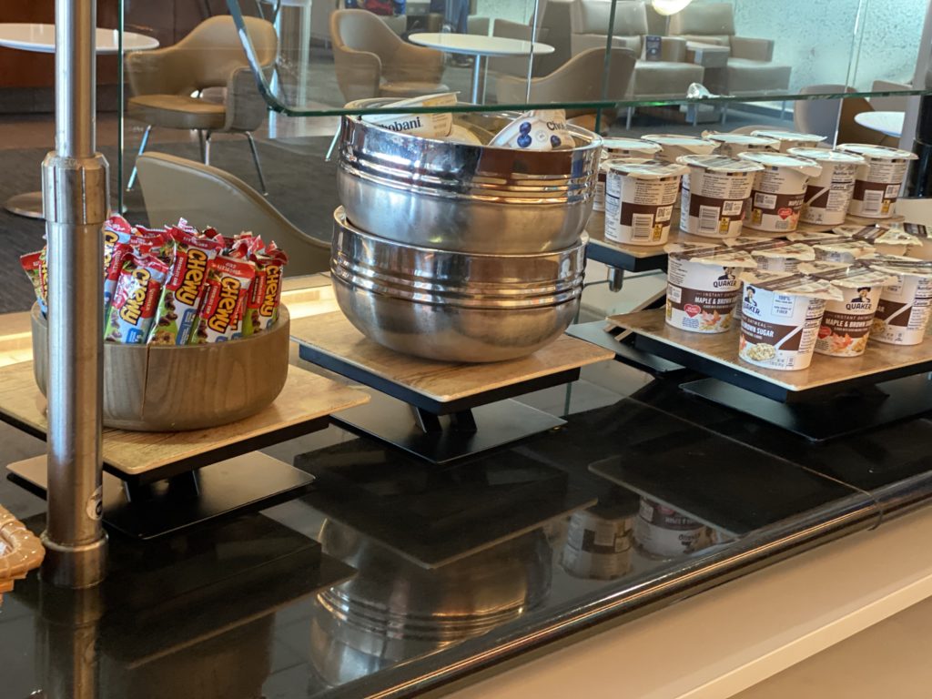 Breakfast offerings in the United Club lounge in Denver