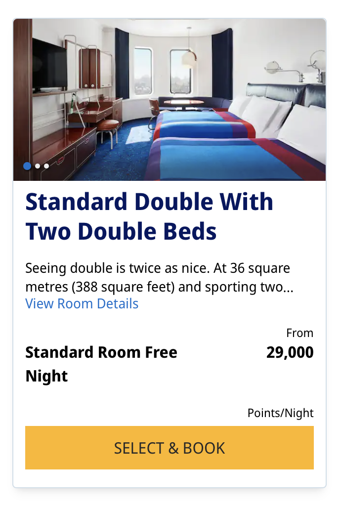 The unique aspect of this Category 6 hotel is that it is only 21,000-29,000 Hyatt points/night but can hold four people. An entire family in London in one room—yes, please! Directly across from St. Pancras International and King’s Cross stations, it provides easy access to many parts of London and even Europe.