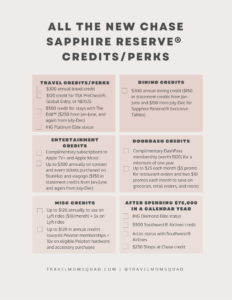 This card was just revamped! Yes, the annual fee increased from $550 to $795. But Chase also added a slew of new credits and benefits (including a $500 credit that you can redeem for a one-time purchase in the Chase Travel℠ portal). As busy moms, we understand that redeeming credits can be annoying and time-consuming, so this offer may not be appealing to everyone. But combined with the elevated welcome offer, it could make sense at least for the first year. Unlike the business version, the personal card will count towards 5/24.