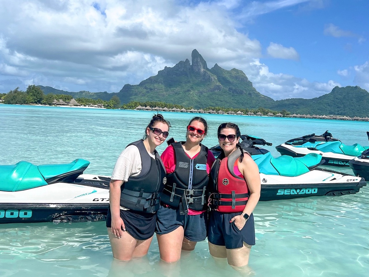 We did a jet ski trip that had us circling the entire island. It was a great way to see other resorts, Mt. Otemanu, and all the gorgeous, clear water! Looks like we all loved our jet ski trips!