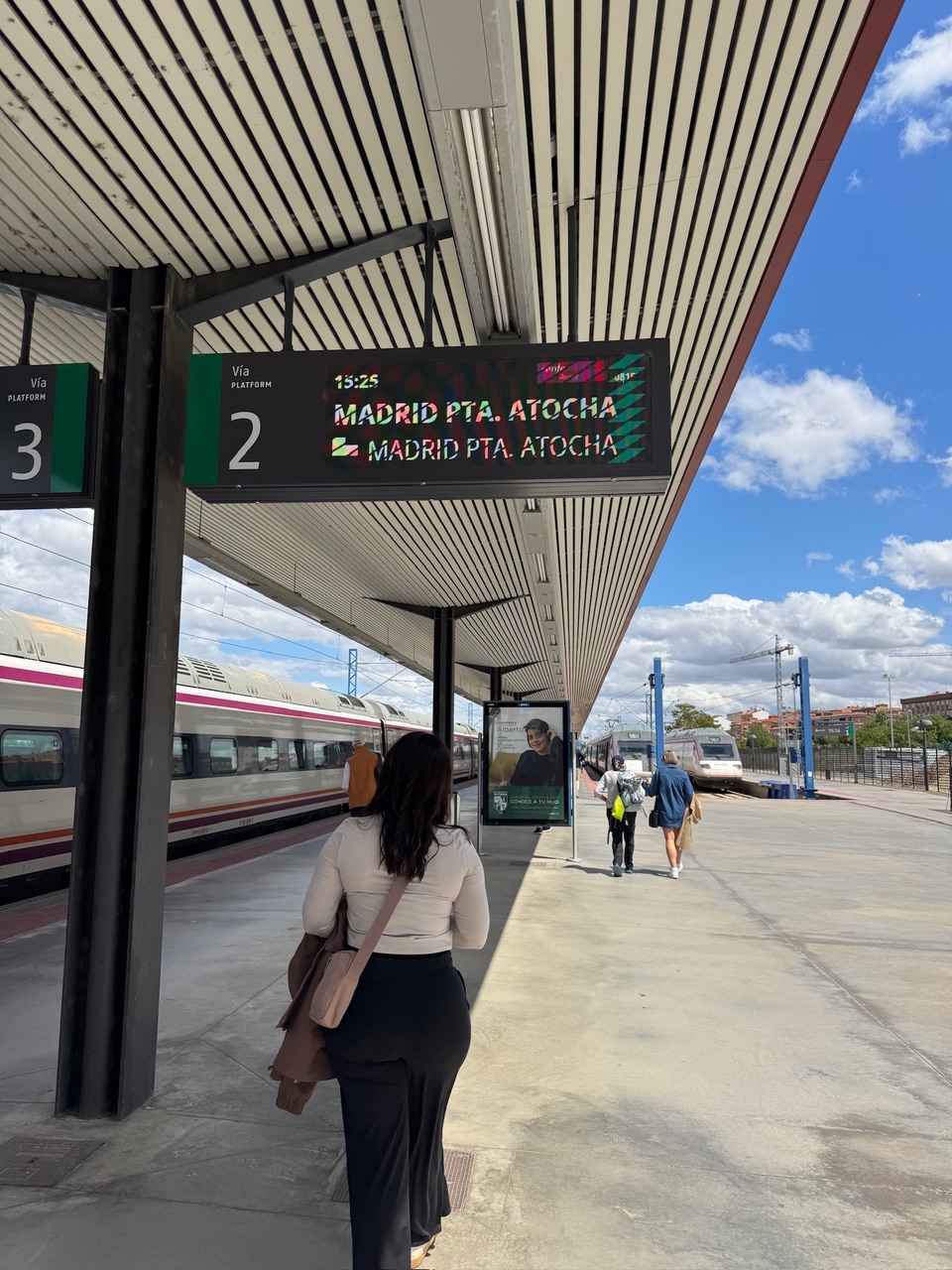 We took the train from Puerta de Atocha station in Madrid to Barcelona-Sants station, and it took about three hours. Our tickets cost 114.35 Euros each.