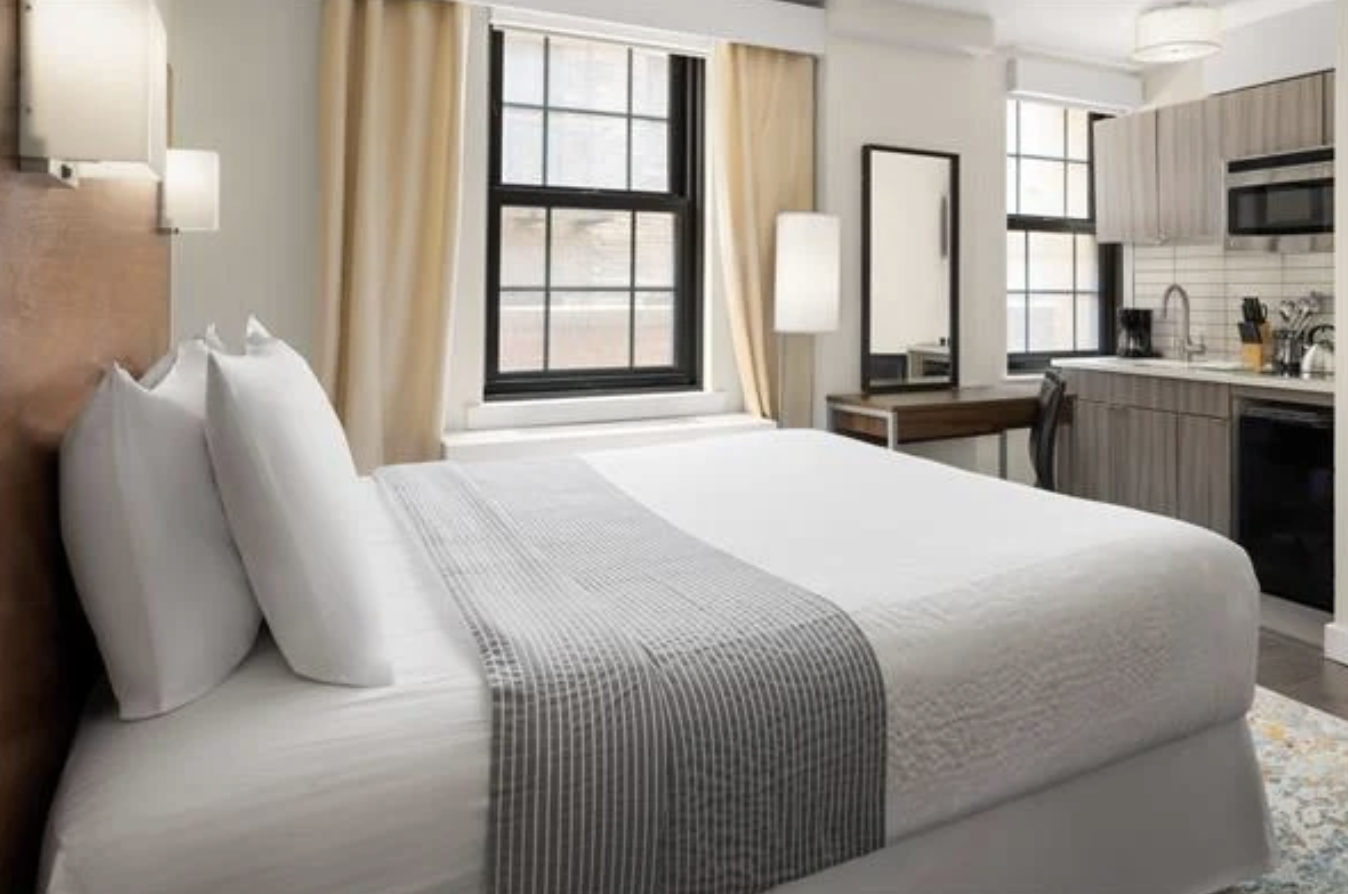 Ideal for more extended stays or families who want space without sacrificing location. The rooms here are generously sized and offer excellent value. Its proximity to Madison Square Garden and Penn Station makes it incredibly convenient.