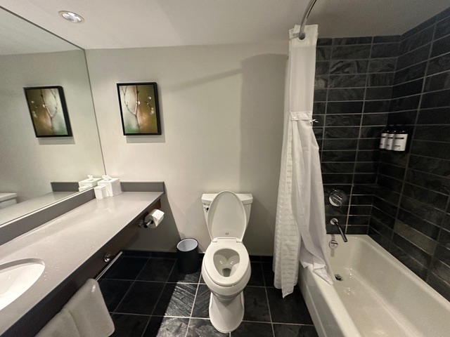 We stayed two nights at the Hyatt Regency Vancouver. It is a Category 5 hotel, and we used 20K Hyatt points per night to stay there. I gave my sister a Guest of Honor award, which earned me an elite night credit, and I also earned two elite night credits for my stay. I also applied a Suite Upgrade Award (SUA) to my stay, so we had a large suite. While the hotel was older and slightly outdated, it was in a perfect location relative to the cruise terminal, and I would stay there again.