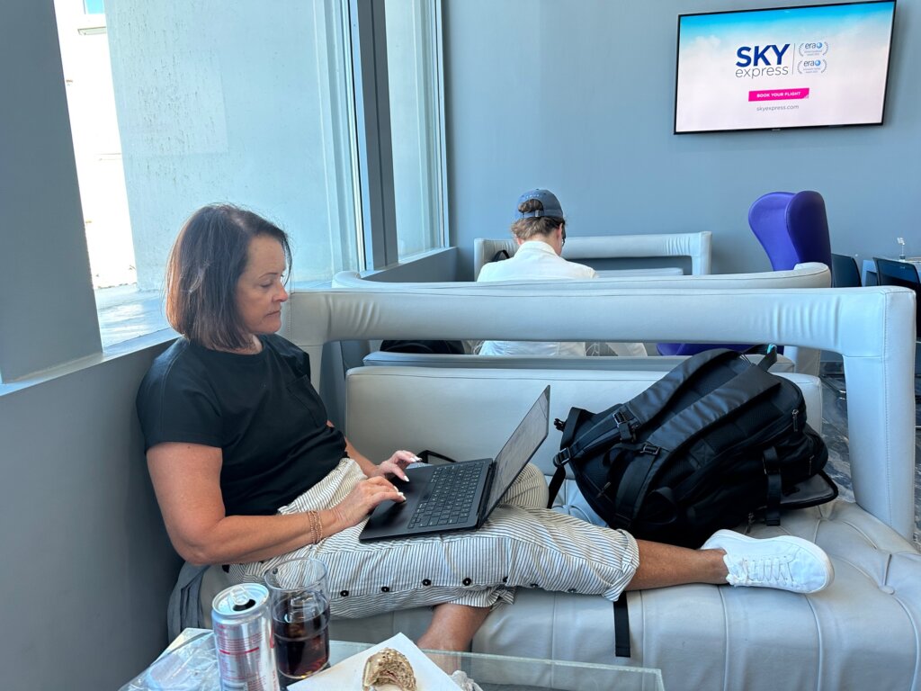 With my Priority Pass Lounge Access, we could go to the Skyserve Express Lounge before our flight. There weren’t many food options, but there was air conditioning and great sofas to lounge on. We were REALLY happy that we had that access when our flight was delayed an hour. The airport was hot and not very modern—it was much better to be in the lounge!