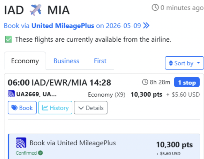 Option 2: Washington, D.C. (IAD) → Miami (MIA)