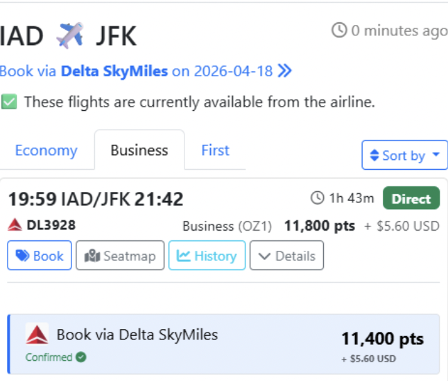 Option 1: Washington, D.C. (IAD) → New York City (JFK)